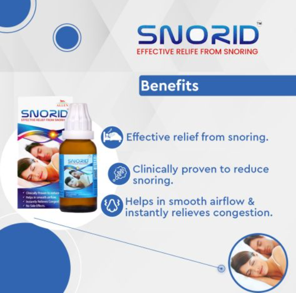 Snorid drops are effective relief from snoring, clinically proven to reduce snoring, help in smooth airflow, and instantly relieve congestion.