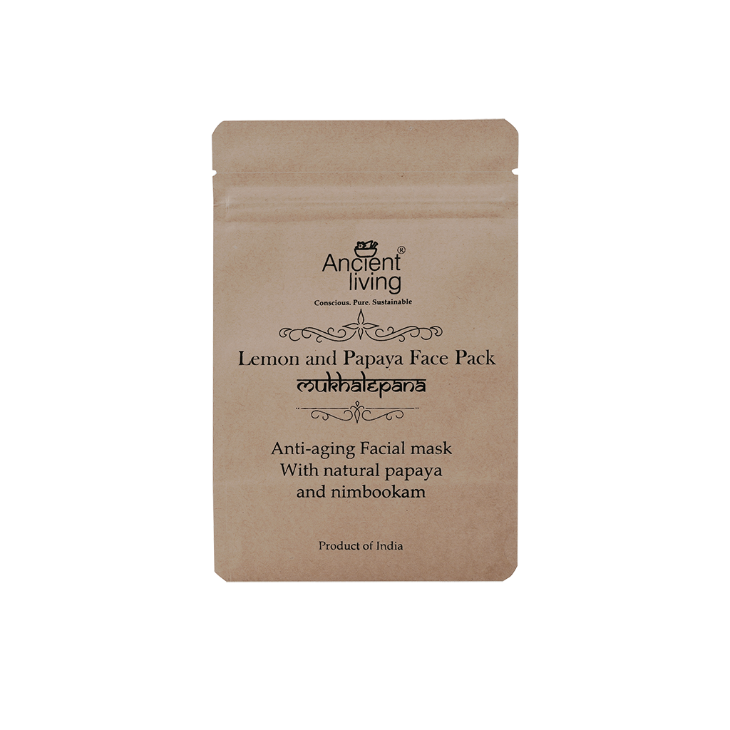 Ancient Living Lemon Papaya Face Pack is a skin brightening clay mask which is infused with pure lemon essential oil, multani mitti, papaya and lemon fruit. This heavenly combination bestows a golden glow upon you. This papaya face pack clears up your complexion and breathes back life into your skin. Our lemon face mask is rich in vitamin C and antioxidants. Papaya eliminates stubborn acne and fights signs of ageing such as fine lines and wrinkles. Lemon gets rid of skin tan and brightens your complexion. This lemon face pack contains multani mitti which nourishes and exfoliates your skin by getting rid of the dead skin cells and impurities. Lemon essential oil cleanses and tones from deep within. Its fresh, citrusy aroma uplifts your mood and activates your mind. Thus, our Lemon Papaya Face Pack holds the secret to youthful, radiant skin. " Benifits: "Papaya: It is rich in Vitamin C and is full of antioxidants which clear pigmentation and blemishes. Papaya benefits for skin fights signs of ageing such as fine lines, under eye circles and wrinkles. It removes tan and nourishes your skin. It moisturizes and hydrates your skin. It exfoliates your skin and keeps you away from skin impurities. It controls acne. Lemon: It is a storehouse of vitamin which clears your complexion. It reduces tan and brightens your skin. Its antibacterial properties get rid of stubborn acne. It fights skin impurities and skin conditions. It imparts a healthy glow. Lemon essential oil: It fights premature ageing. Its rich in vitamin C and antioxidants which get rid of stubborn acne and blemishes. It blesses your skin with a beautiful glow. It cleanses your skin from deep within the pores. Its astringent properties reduces excess oil and shrink large pores. Its fresh, citrusy aroma uplifts your mood and activates your mind. Multani Mitti: It gently exfoliates your skin by removing dead skin cells. It imparts an instant glow to your face. It gets rid of impurities and purifies your skin by unclogging your pores. It controls acne, prevents it and fades scars. It reduces tan. It removes blackheads and whiteheads. It is highly absorbent and removes excess oil and toxins out of your skin. It moisturizes and nourishes your skin while having a cooling effect on it. " Ingredients: Papaya fruit ,Lemon fruit ,Multani Mitti,Lemon essential oil How to use: Take required quantity, mix with Ancient Living Rose water/milk, apply on the face & neck and wait for 30 minutes. Wash off with water and pat dry