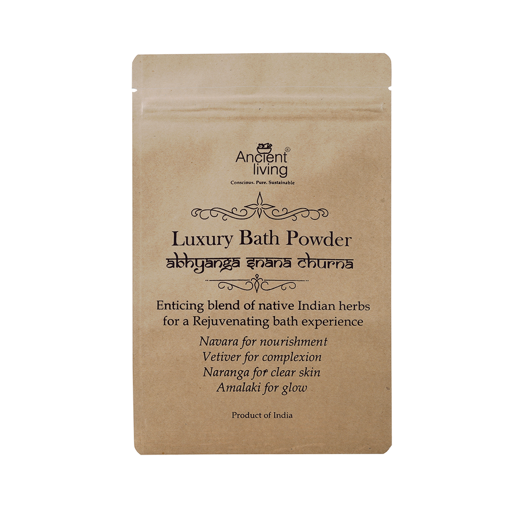 Bath powders are an excellent way to help skin absorb all the herbal and medicinal properties of the herbs present in the bath powder. Ancient Living’s Luxury Bath Powder helps you to relive the magic of ancient ubtans used by our ancestors. It is an enticing blend of 13 Indian herbs which help you have a refreshing and a wholesome bathing experience. These pure and organic ingredients will breathe back life into your skin so that you can kick start your day! To indulge in Ayurvedic Abhyanga snanam, one can apply suitable body oil like sesame or cold pressed almond oil and wash off with our bath powder. " Benifits: "Navara – It exfoliates and nourishes your skin. Mugda – It forms a great cleansing base and softens your skin. Musta – Its anti bacterial properties defend your skin against various infections. Ushira – It gets rid of impurities and gives you glowing skin. Amalaki – It is rich vitamin C and imparts a healthy glow. Vidanga – It is a strong anti microbial and helps ward off skin infections. Haritaki – Its anti bacterial properties help cure acne and fade acne marks, too! Kasturi Harida – Its anti inflammatory properties gives you a blemish free, naturally glowing skin Vetiver – It soothes your skin with its cooling properties and gives you a clearer complexion. Naranga – It acts as a cleansing agent and clears your skin. Bakuchi – It removes all the toxins from the skin revitalizes it. Chick pea – It cleanses your skin, reduces age spots and brightens your skin. Vibhitaki – It treats minor skin irritations. " Ingredients: Navara, Mudga , Musta, Vidanga, Ushira, Amalaki, Haritaki,Kasturi Harida ,Bakuchi, Shati, Chick pea,Naranga,& Vibhitaki. How to use: