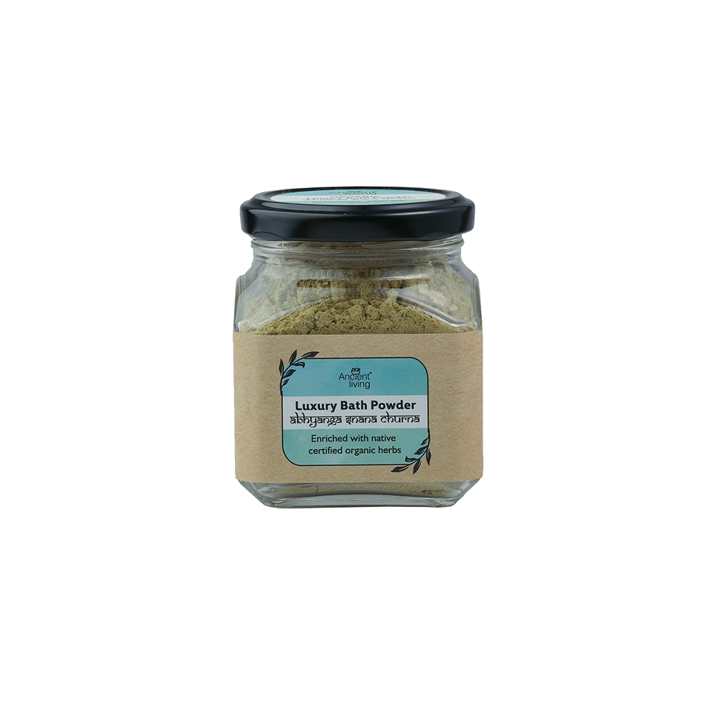 Bath powders are an excellent way to help skin absorb all the herbal and medicinal properties of the herbs present in the bath powder. Ancient Living’s Luxury Bath Powder helps you to relive the magic of ancient ubtans used by our ancestors. It is an enticing blend of 13 Indian herbs which help you have a refreshing and a wholesome bathing experience. These pure and organic ingredients will breathe back life into your skin so that you can kick start your day! To indulge in Ayurvedic Abhyanga snanam, one can apply suitable body oil like sesame or cold pressed almond oil and wash off with our bath powder. " Benifits: "Navara – It exfoliates and nourishes your skin. Mugda – It forms a great cleansing base and softens your skin. Musta – Its anti bacterial properties defend your skin against various infections. Ushira – It gets rid of impurities and gives you glowing skin. Amalaki – It is rich vitamin C and imparts a healthy glow. Vidanga – It is a strong anti microbial and helps ward off skin infections. Haritaki – Its anti bacterial properties help cure acne and fade acne marks, too! Kasturi Harida – Its anti inflammatory properties gives you a blemish free, naturally glowing skin Vetiver – It soothes your skin with its cooling properties and gives you a clearer complexion. Naranga – It acts as a cleansing agent and clears your skin. Bakuchi – It removes all the toxins from the skin revitalizes it. Chick pea – It cleanses your skin, reduces age spots and brightens your skin. Vibhitaki – It treats minor skin irritations. " Ingredients: Navara, Mudga , Musta, Vidanga, Ushira, Amalaki, Haritaki,Kasturi Harida ,Bakuchi, Shati, Chick pea,Naranga,& Vibhitaki. How to use: Mix with water to make a paste with few spoons of the powder. Scrub it over the body gently for a refreshing bath experience.