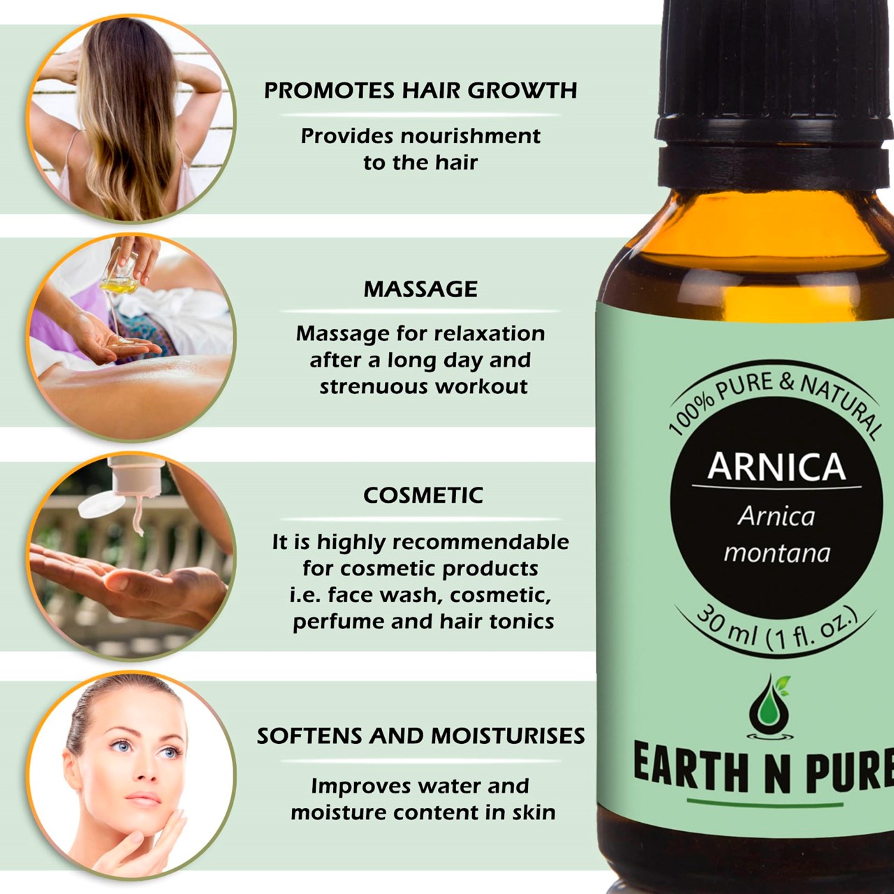 - CLEANER AND HIGH-QUALITY AFFORDABLE OILS: At Earth N Pure our goal is to positively impact the lives of as many people as we possibly can, by selling such a high quality product at an affordable price. Be sure while purchasing Earth N Pure Arnica Oil as it is physically refined thus made more stable for extended shelf life.