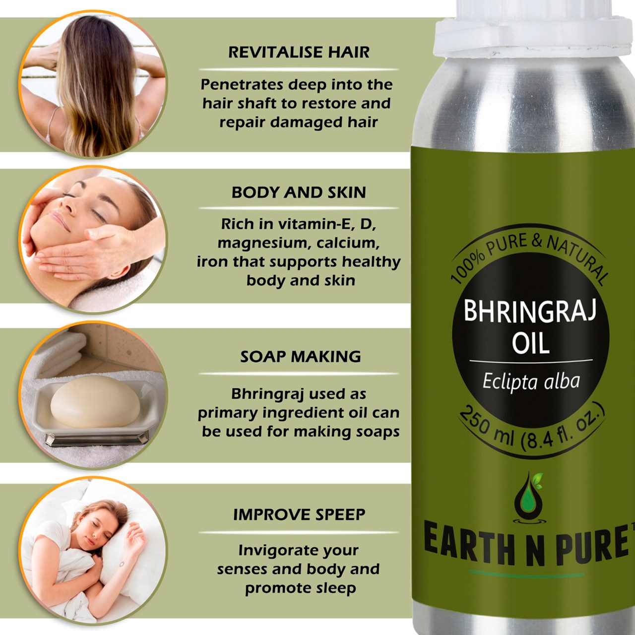 - CLEANER AND HIGH-QUALITY AFFORDABLE OILS: At Earth N Pure our goal is to positively impact the lives of as many people as we possibly can, by selling such a high quality product at an affordable price. Be sure while purchasing Earth N Pure Bhringraj Oil as it is physically refined thus made more stable for extended shelf life.
