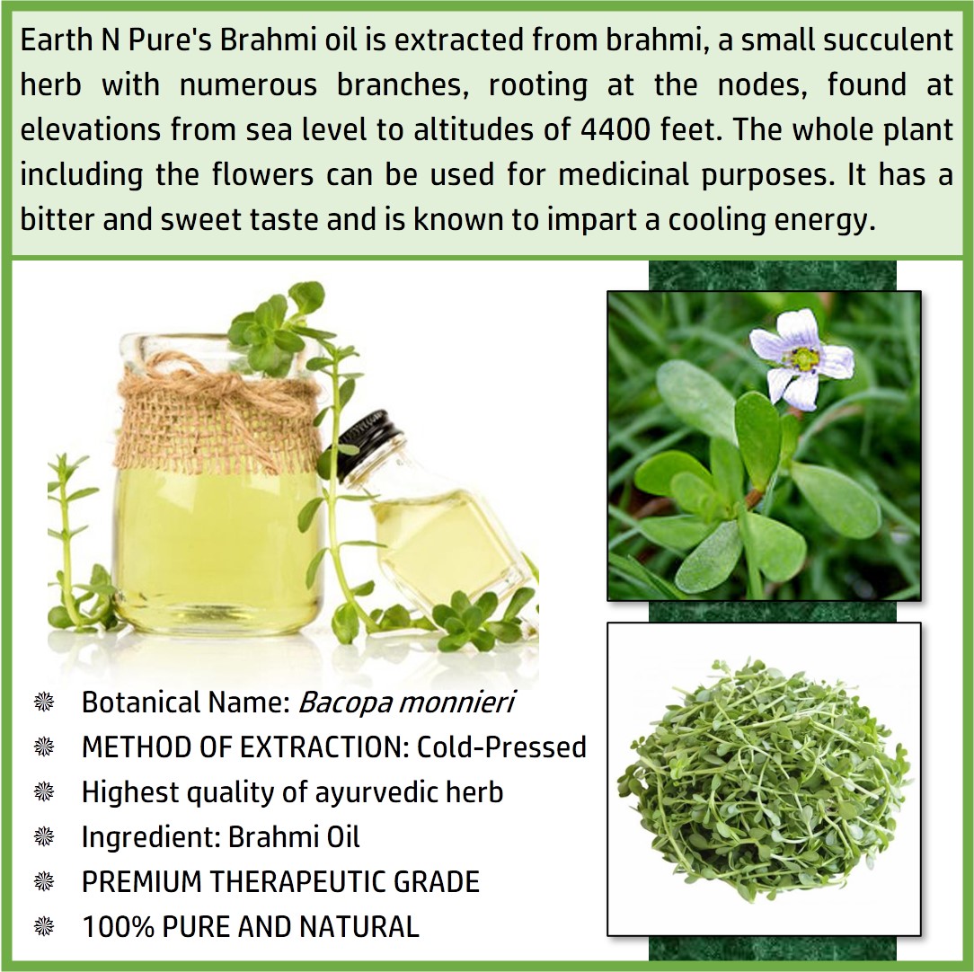 - BODYCARE WITH BRAHMI OIL – Made with pure and undiluted Bacopa monnieri, DIY is just the next step. Make your own beauty and well-being products with Brahmi Oil and other high quality ingredients from Earth N Pure. Discover recipes to create handmade soap, moisturizer, Brahmi Oil face wash, and other loveliness products.
