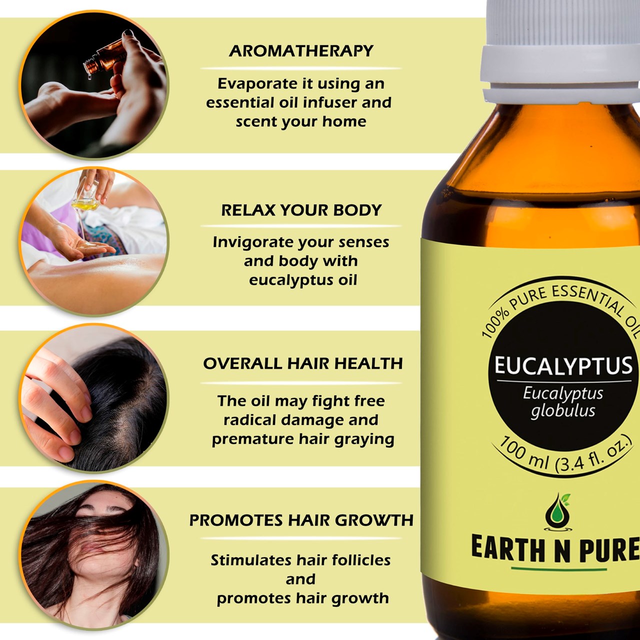 - CLEANER AND HIGH-QUALITY AFFORDABLE OILS: At Earth N Pure our goal is to positively impact the lives of as many people as we possibly can, by selling such a high quality product at an affordable price. Be sure while purchasing Earth N Pure Eucalyptus Oil as it is physically refined thus made more stable for extended shelf life.