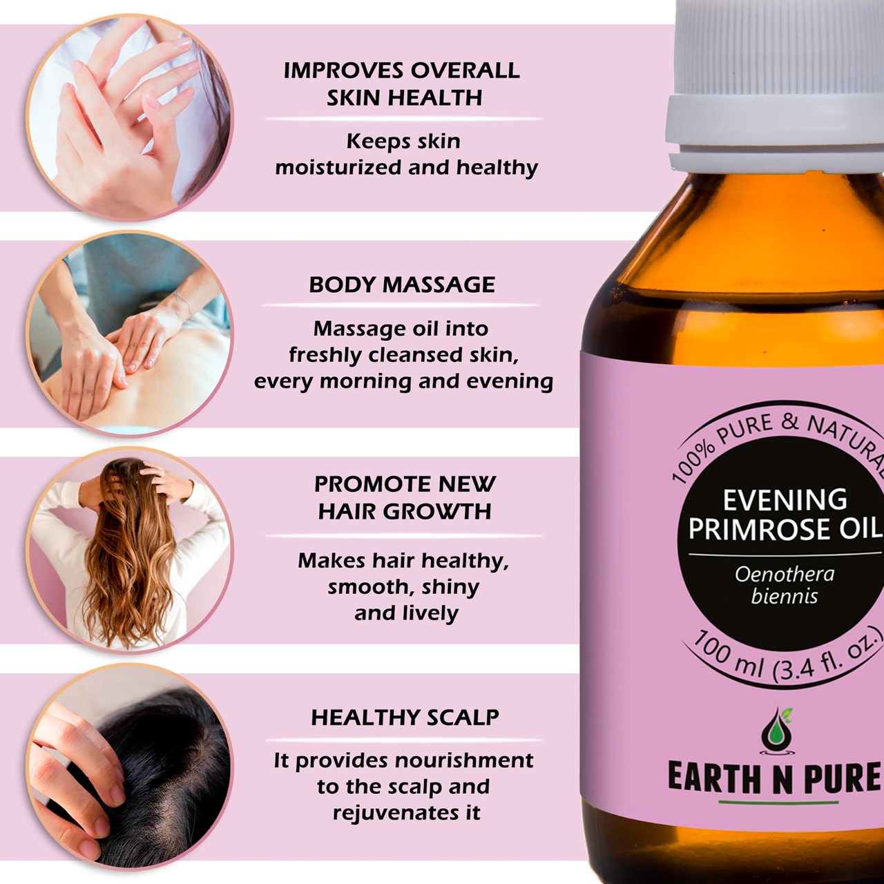- CLEANER AND HIGH-QUALITY AFFORDABLE OILS: At Earth N Pure our goal is to positively impact the lives of as many people as we possibly can, by selling such a high quality product at an affordable price. Be sure while purchasing Earth N Pure Evening Primrose Oil as it is physically refined thus made more stable for extended shelf life.