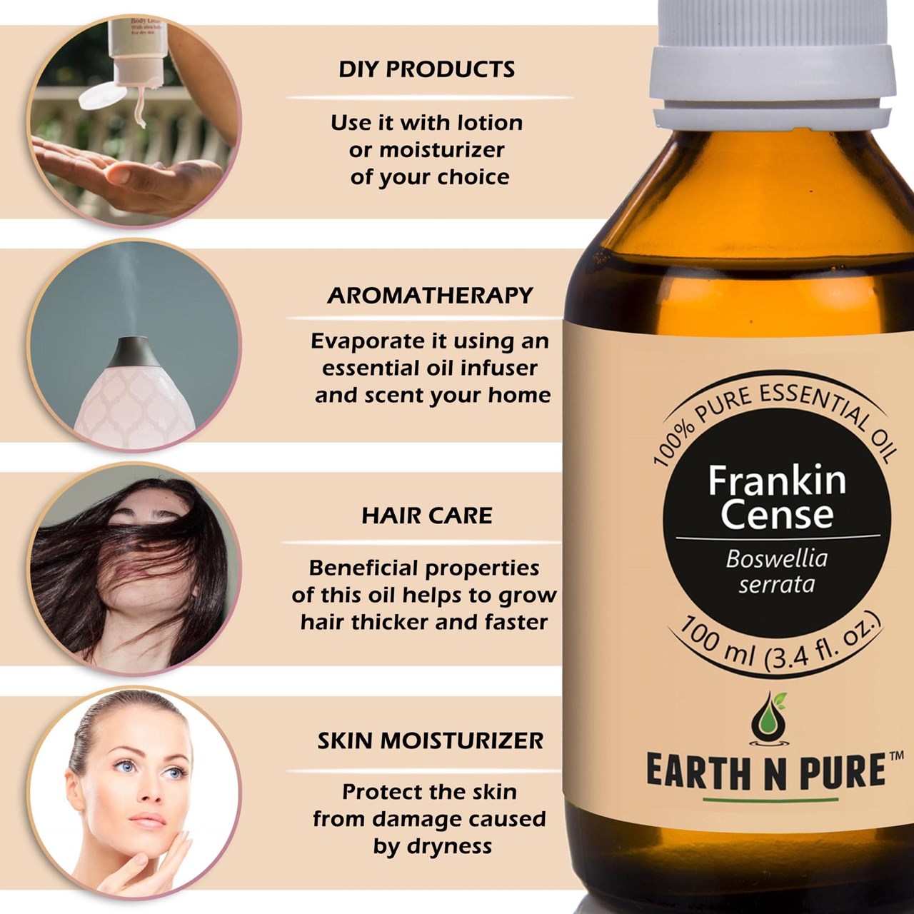 - BODYCARE WITH FRANKINCENSE OIL – Made with pure and undiluted Boswellia serrata, DIY is just the next step. Make your own beauty and well-being products with Frankincense Oil and other high quality ingredients from Earth N Pure. Discover recipes to create handmade soap, moisturizer, Frankincense Oil face wash, and other loveliness products.