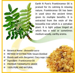 - CLEANER AND HIGH-QUALITY AFFORDABLE OILS: At Earth N Pure our goal is to positively impact the lives of as many people as we possibly can, by selling such a high quality product at an affordable price. Be sure while purchasing Earth N Pure Frankincense Oil as it is physically refined thus made more stable for extended shelf life.