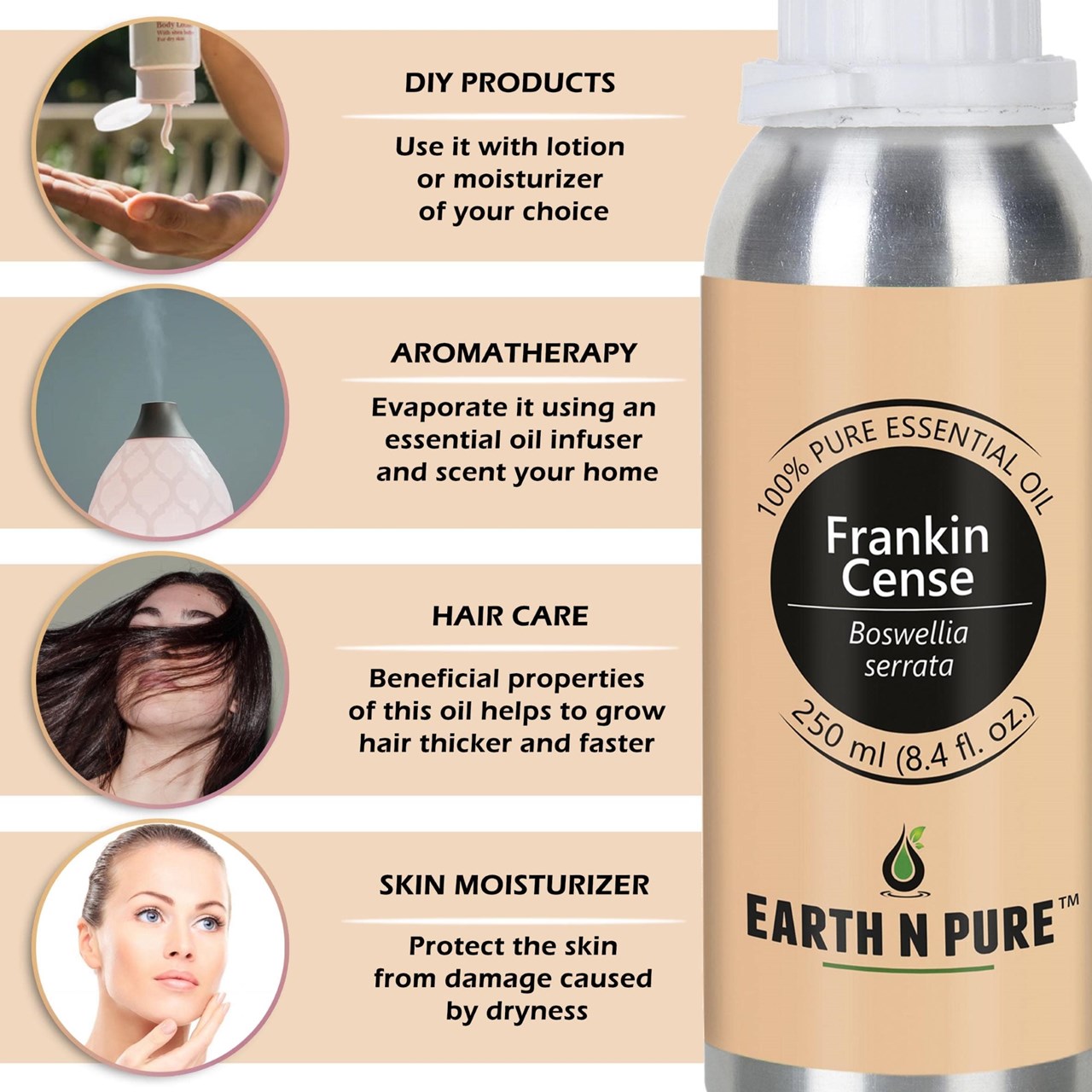 - BODYCARE WITH FRANKINCENSE OIL – Made with pure and undiluted Boswellia serrata, DIY is just the next step. Make your own beauty and well-being products with Frankincense Oil and other high quality ingredients from Earth N Pure. Discover recipes to create handmade soap, moisturizer, Frankincense Oil face wash, and other loveliness products.
