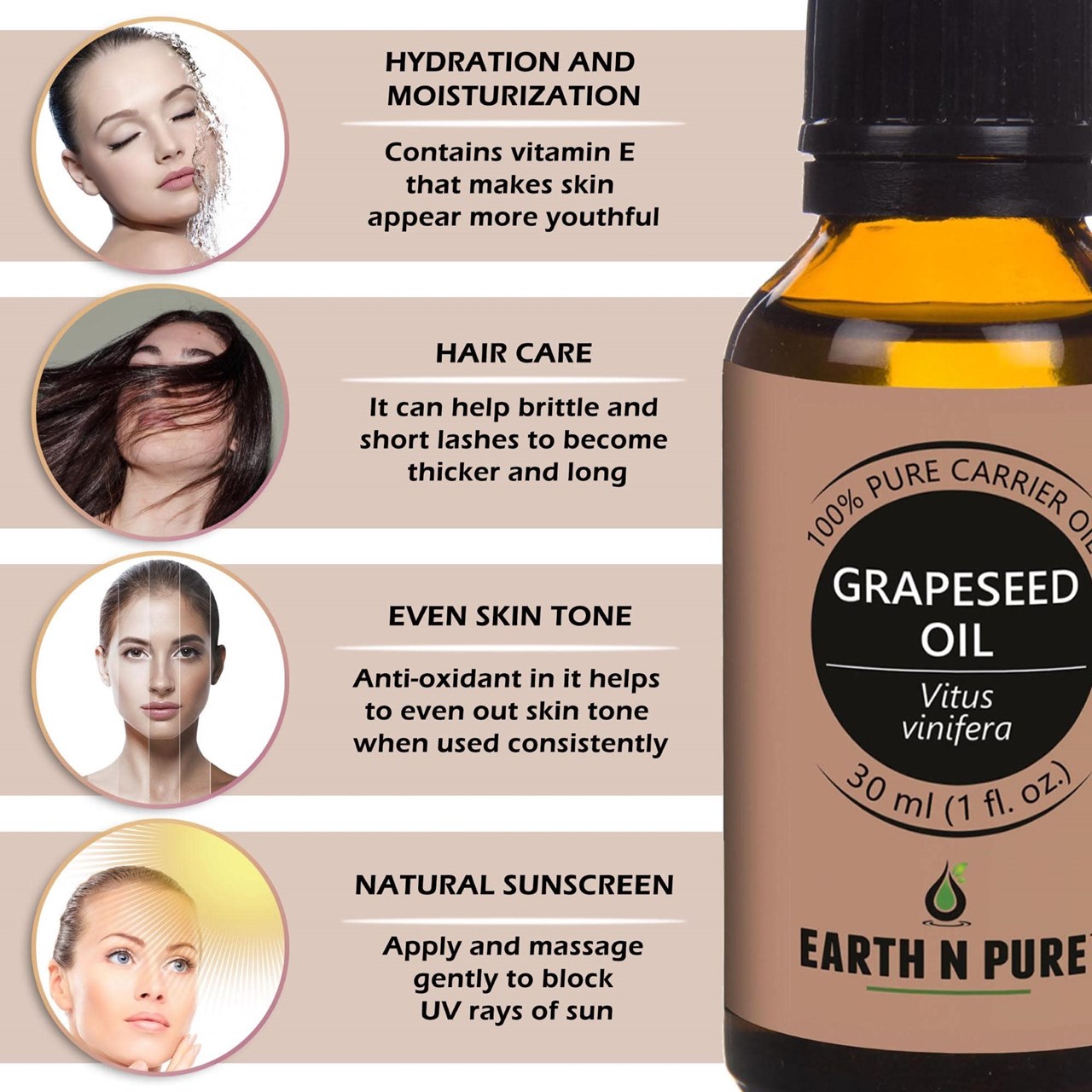 - CLEANER AND HIGH-QUALITY AFFORDABLE OILS: At Earth N Pure our goal is to positively impact the lives of as many people as we possibly can, by selling such a high quality product at an affordable price. Be sure while purchasing Earth N Pure Grapeseed Oil as it is physically refined thus made more stable for extended shelf life.