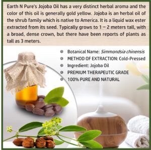 - CLEANER AND HIGH-QUALITY AFFORDABLE OILS: At Earth N Pure our goal is to positively impact the lives of as many people as we possibly can, by selling such a high quality product at an affordable price. Be sure while purchasing Earth N Pure Jojoba Oil as it is physically refined thus made more stable for extended shelf life.