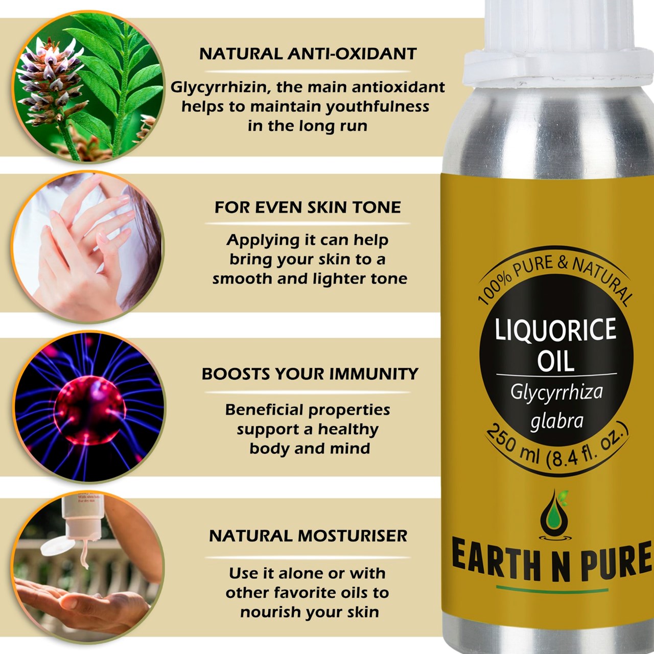 - CLEANER AND HIGH-QUALITY AFFORDABLE OILS: At Earth N Pure our goal is to positively impact the lives of as many people as we possibly can, by selling such a high quality product at an affordable price. Be sure while purchasing Earth N Pure Liquorice Oil as it is physically refined thus made more stable for extended shelf life.
