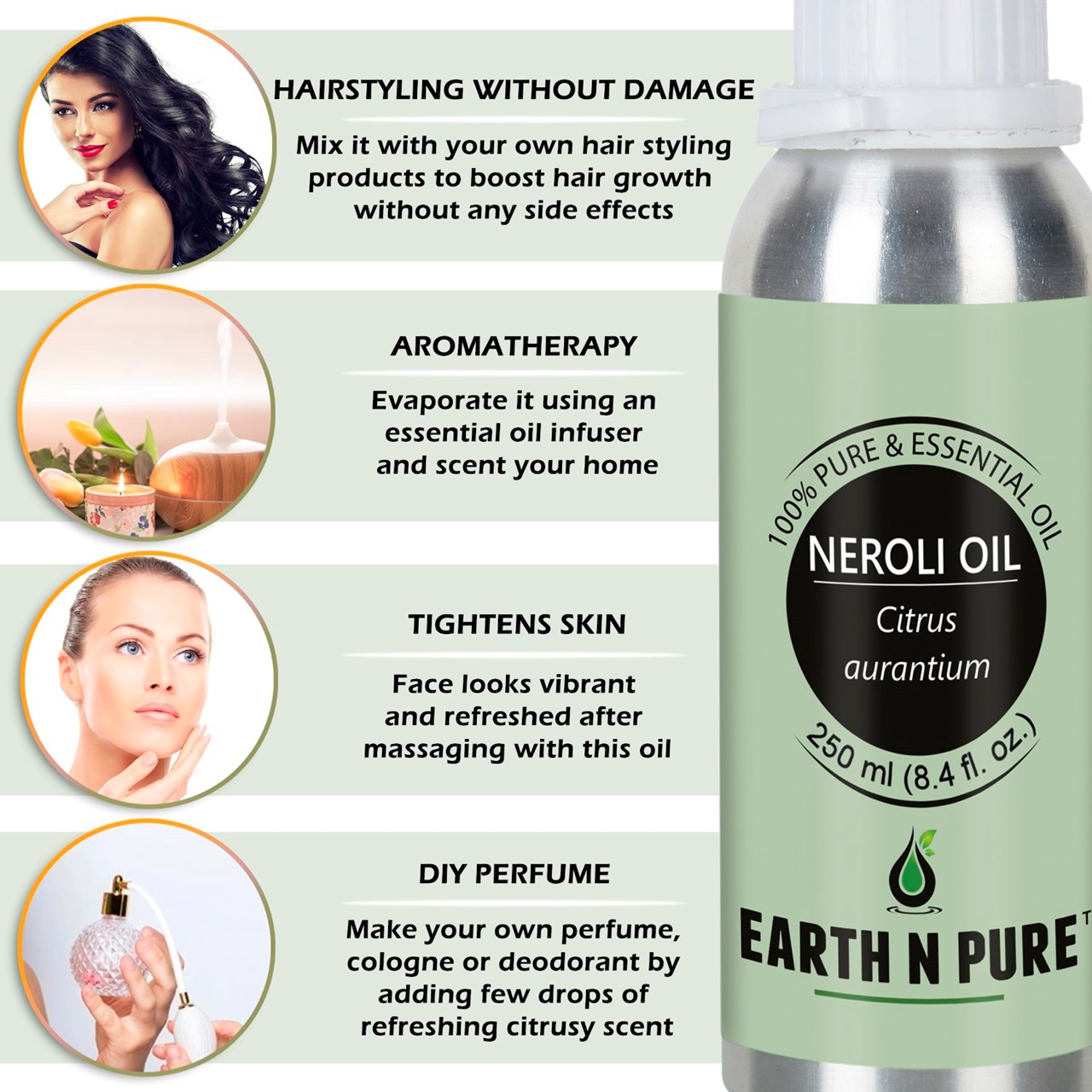 - CLEANER AND HIGH-QUALITY AFFORDABLE OILS: At Earth N Pure our goal is to positively impact the lives of as many people as we possibly can, by selling such a high quality product at an affordable price. Be sure while purchasing Earth N Pure Neroli Oil as it is physically refined thus made more stable for extended shelf life.