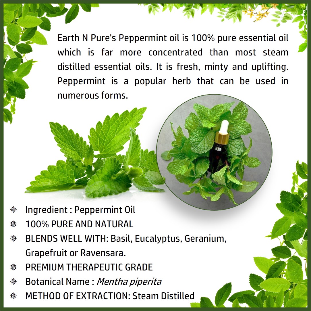- CLEANER AND HIGH-QUALITY AFFORDABLE OILS: At Earth N Pure our goal is to positively impact the lives of as many people as we possibly can, by selling such a high quality product at an affordable price. Be sure while purchasing Earth N Pure Peppermint Oil as it is physically refined thus made more stable for extended shelf life.