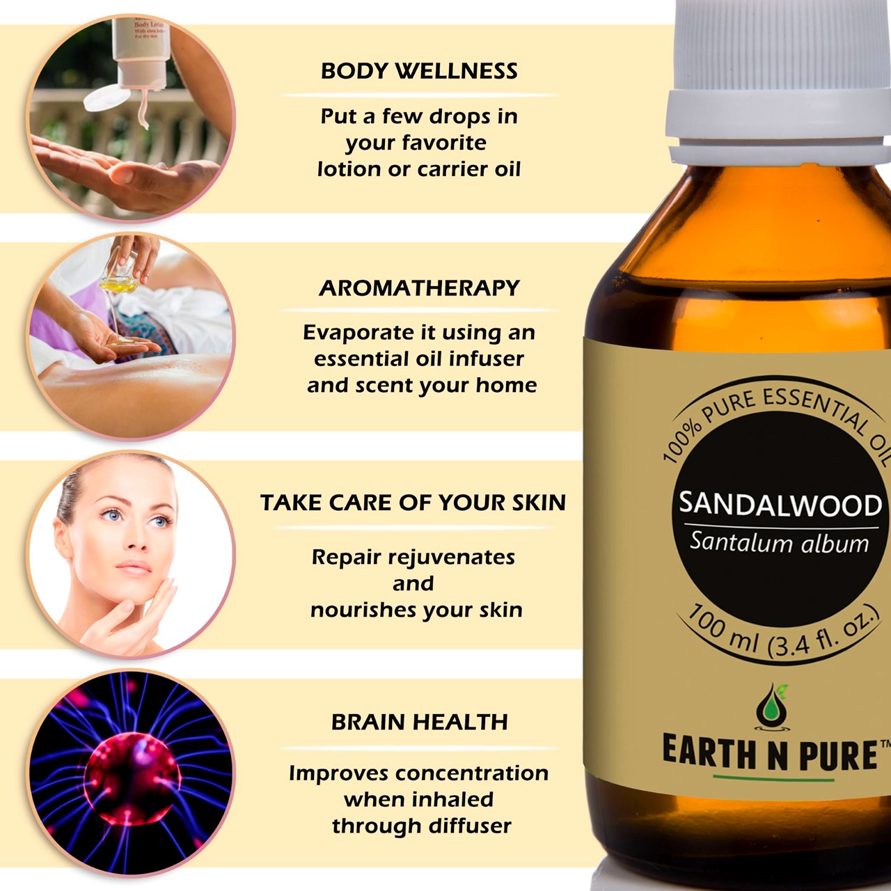 - BODYCARE WITH SANDALWOOD OIL – Made with pure and undiluted Santalum album, DIY is just the next step. Make your own beauty and well-being products with Sandalwood Oil and other high quality ingredients from Earth N Pure. Discover recipes to create handmade soap, moisturizer, Sandalwood Oil face wash, and other loveliness products.