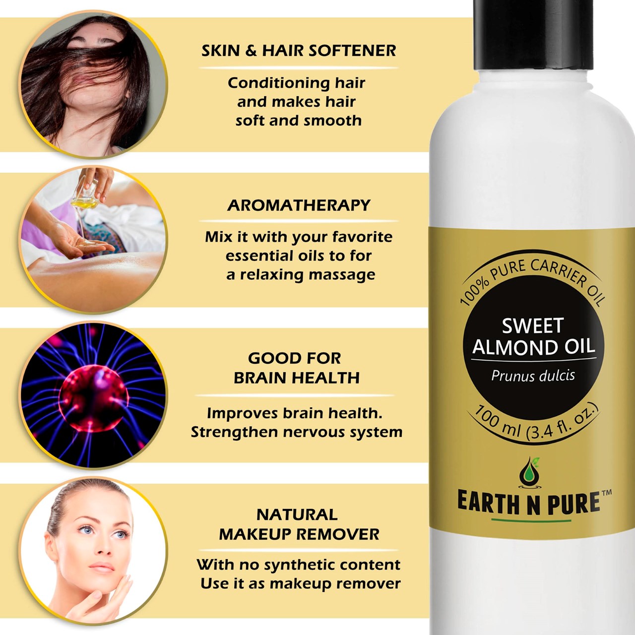 - CLEANER AND HIGH-QUALITY AFFORDABLE OILS: At Earth N Pure our goal is to positively impact the lives of as many people as we possibly can, by selling such a high quality product at an affordable price. Be sure while purchasing Earth N Pure Sweet Almond Oil as it is physically refined thus made more stable for extended shelf life.