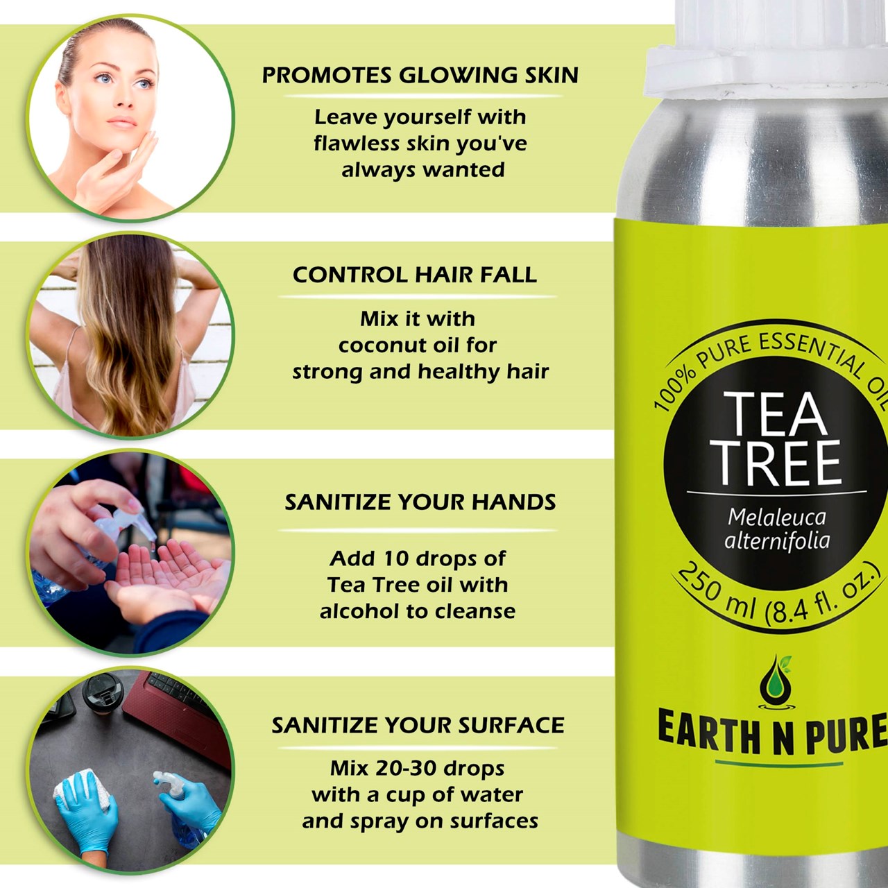 - BODYCARE WITH TEA TREE OIL – Made with pure and undiluted Melaleuca alternifolia, DIY is just the next step. Make your own beauty and well-being products with Tea tree Oil and other high quality ingredients from Earth N Pure. Discover recipes to create handmade soap, moisturizer, Tea tree Oil face wash, and other loveliness products.