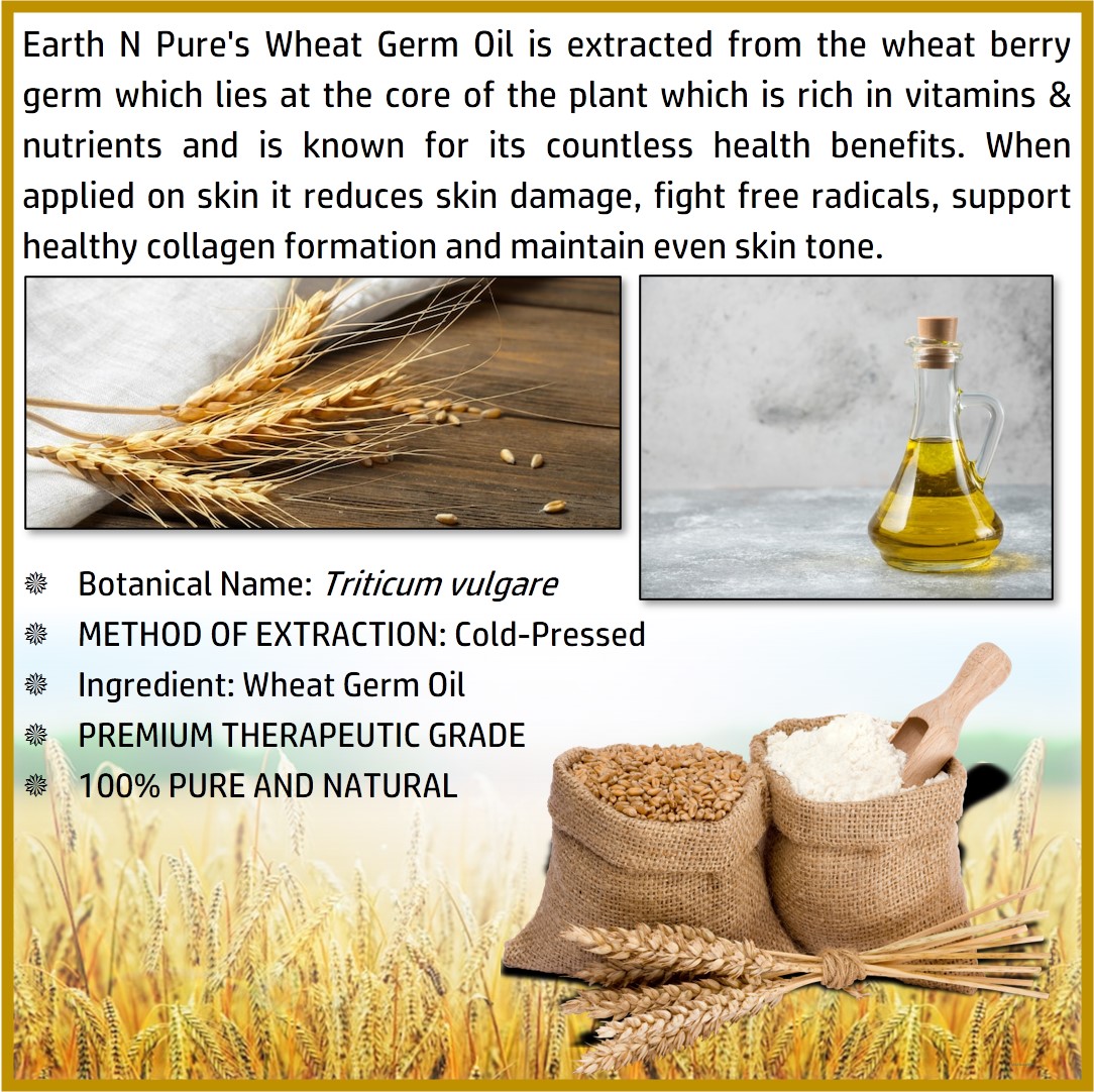 Earth N Pure’s Wheat Germ Oil is extracted from the wheat berry germ which lies at the core of the plant which is rich in vitamins & nutrients and is known f...