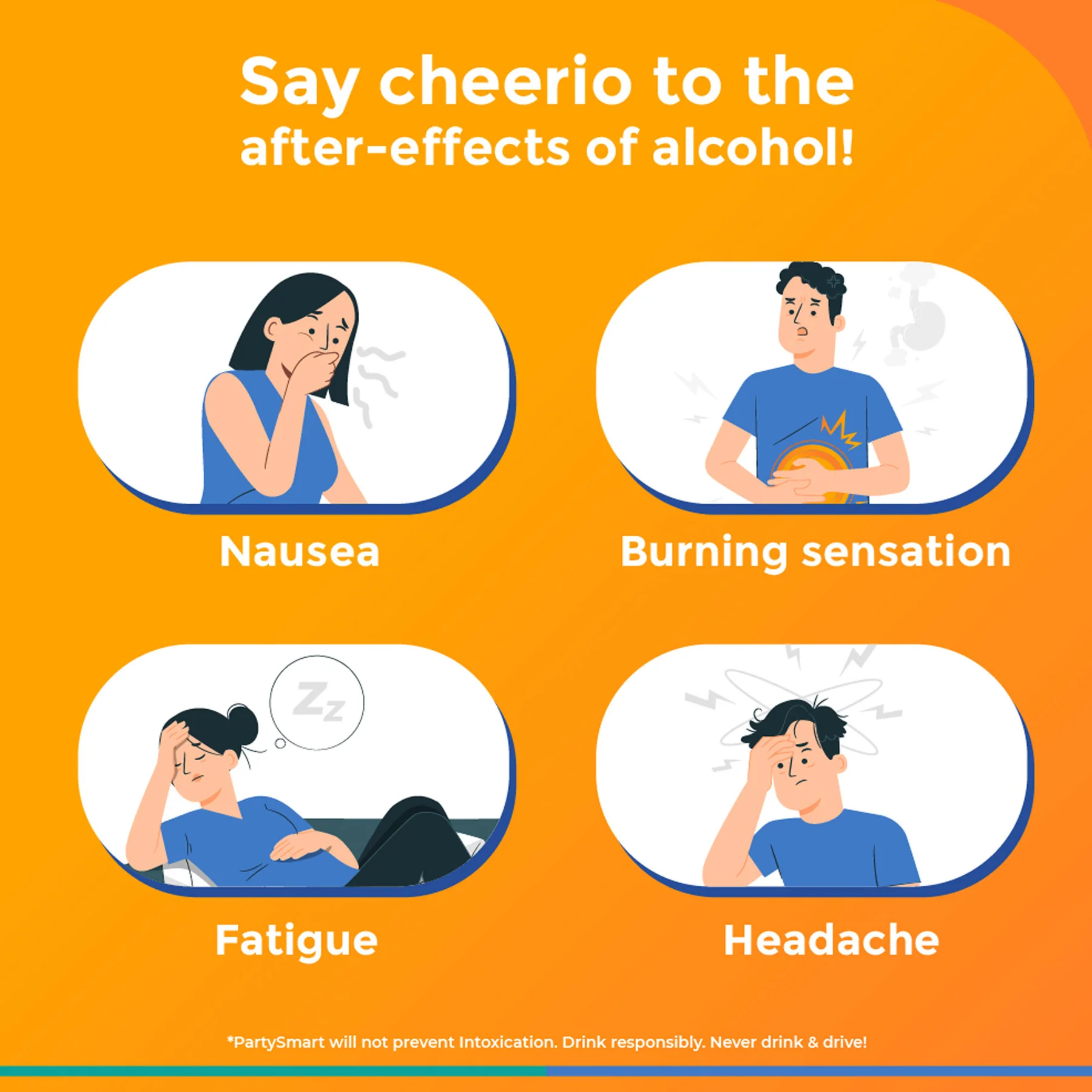 PartySmart is an herbal formulation that helps prevents hangover. When you consume alcohol, it is broken down into acetaldehyde. Acetaldehyde is primarily responsible for hangovers. The build-up of acetaldehyde in the liver leads to a hangover or not so good morning. Himalaya PartySmart helps prevents hangover by preventing acetaldehyde build up in the liver leading to a better morning.