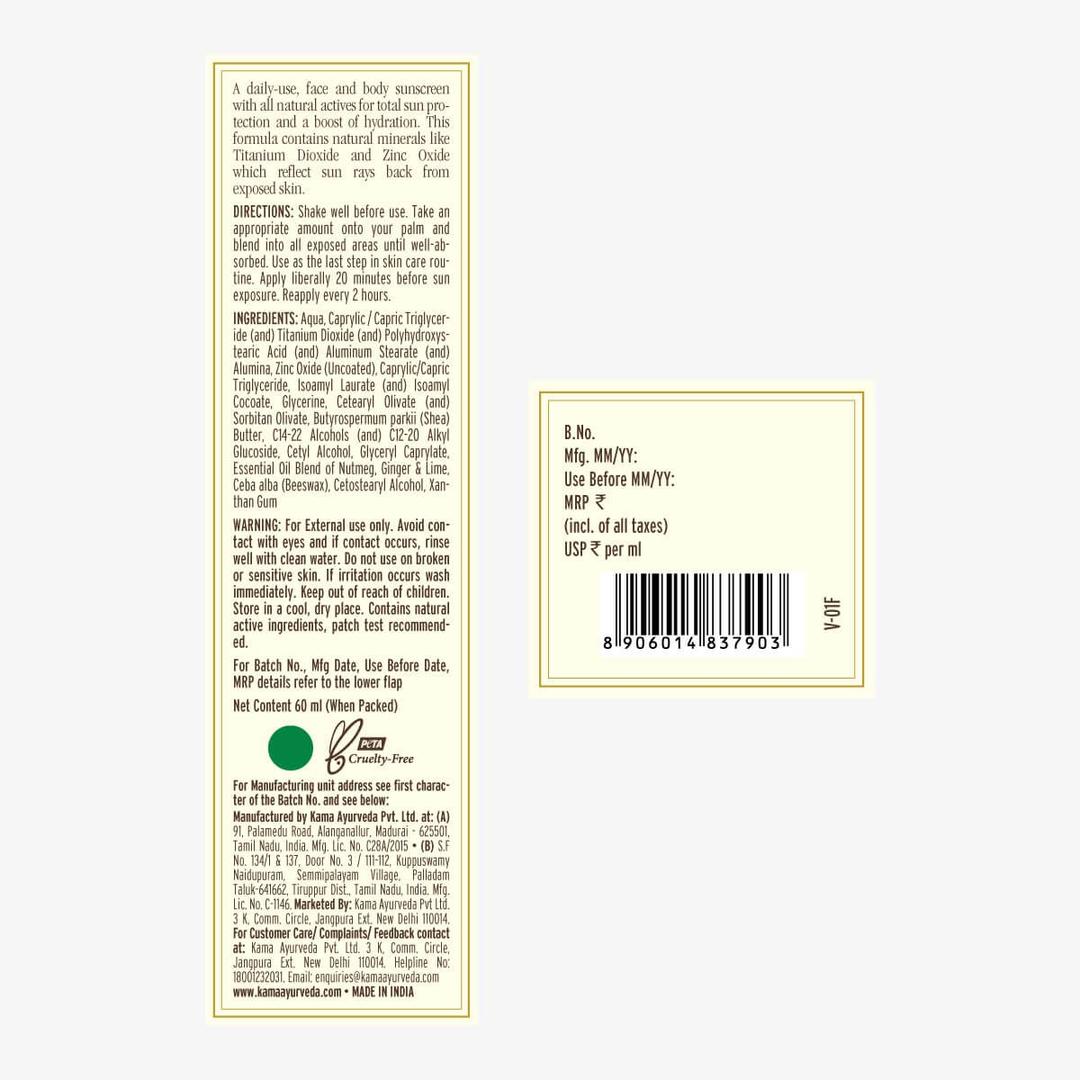 A light organic sunscreen containing natural-origin, UV protection minerals such as Titanium Dioxide and Zinc Dioxide which reflect the sun rays back from exposed skin. Natural Glycerine and Olive Oil condition skin without making it greasy. Nourishing Shea Butter soothes irritation, repairs sunspots and other signs of sun damage. Pure essential oils of Nutmeg, Ginger and Lime leave the skin lightly and freshly scented.
