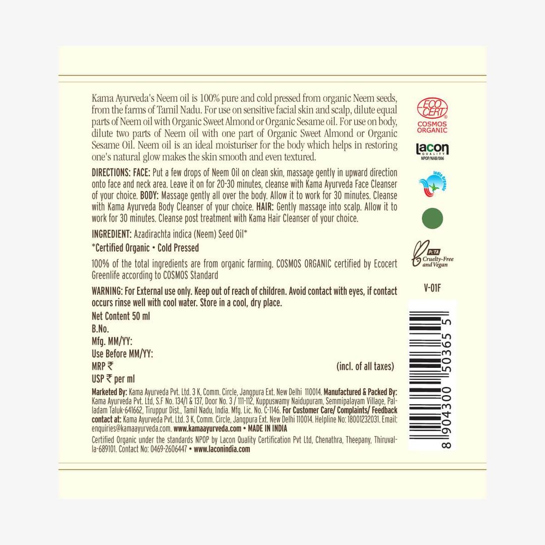 It is recommend to dilute equal parts (50/50) of Neem Oil with Sweet Almond/Sesame Oil and Gently massage into scalp. Allow it to work for 30 minutes. Cleanse with Kama Ayurveda Hair Cleanser of choice.