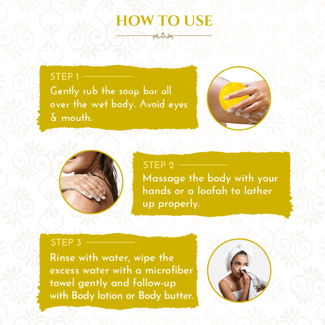 Caress your skin with this zesty & tangy Lemon soap to restore your glow & vibrance. It removes excess dirt & grime while making your skin bright & toned.