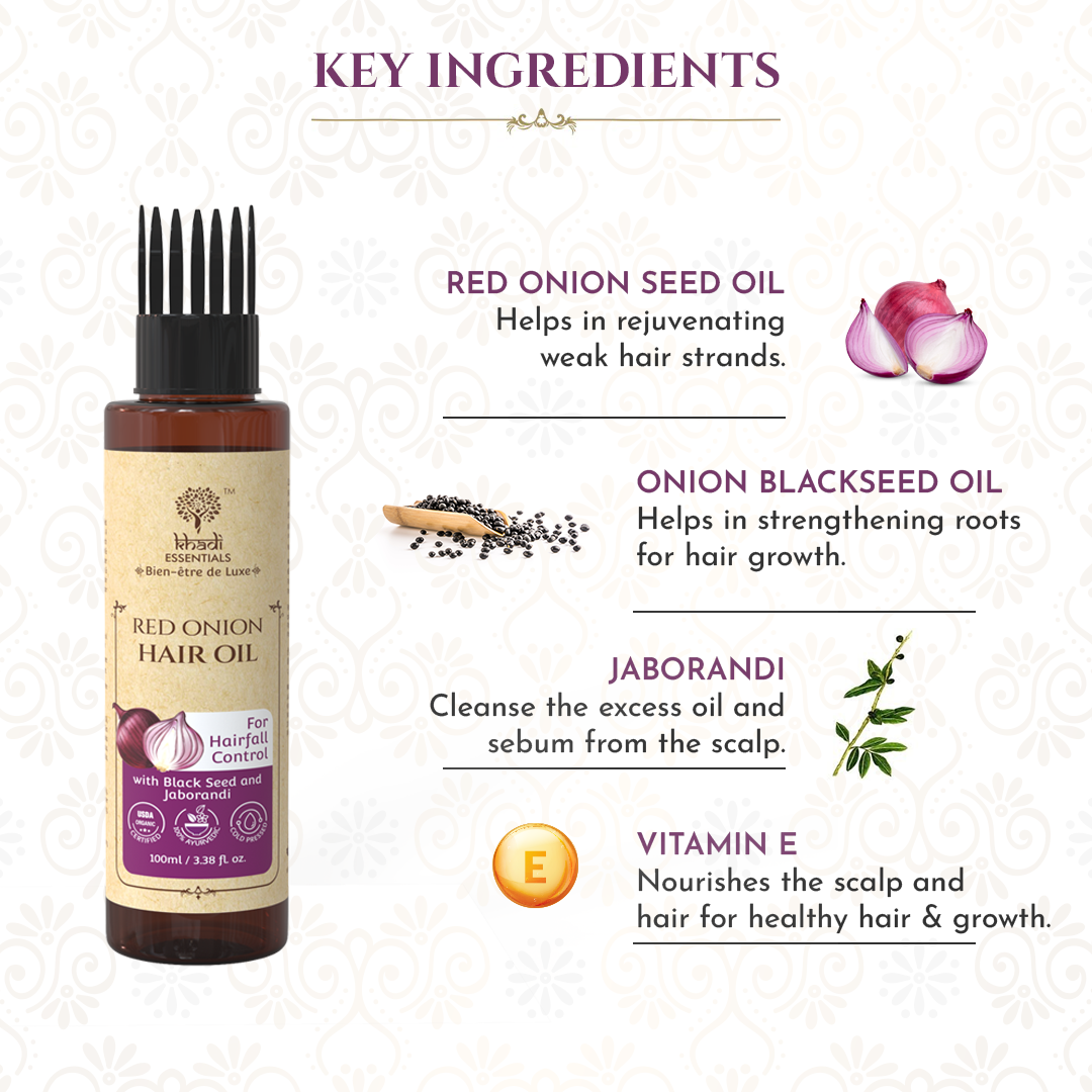 Boost hair growth & volume with Red Onion & Black Seed Hair Oil. A combination of the most nutrient-rich ingredients helps promote hair growth & prevent hair fall. Infused with super bio-actives like Jaborandi, Sesame & Vitamin E, it helps strengthen hair strands, reduce breakage & repair damage.