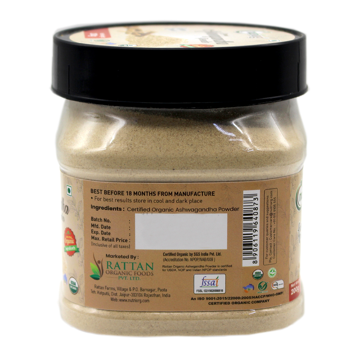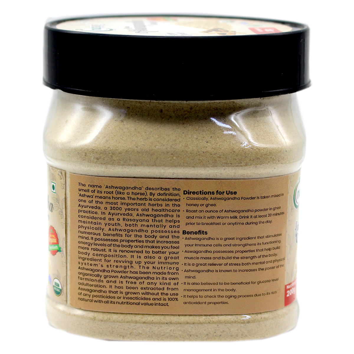 The name ‘Ashwagandha’ describes the smell of its root (like a horse). By definition, ‘Ashwa’ means horse. The herb is considered one of the most important herbs in the Ayurveda, a 3000 years old healthcare practice. In Ayurveda, Ashwagandha is considered as a Rasayana that helps maintain youth, both mentally and physically. Ashwagandha possesses numerous benefits for the body and the mind. It possesses properties that increases energy levels of the body and makes you feel more robust. It is renowned to better your body composition. It is also a great ingredient for revving up your immune system’s strength. The Nutriorg Ashwagandha Powder has been made from organically grown Ashwagandha in its own farmlands and is free of any kind of adulteration. It has been extracted from Aswagandha that is grown without the use of any pesticides or insecticides and is 100% natural with all its nutritional value intact.