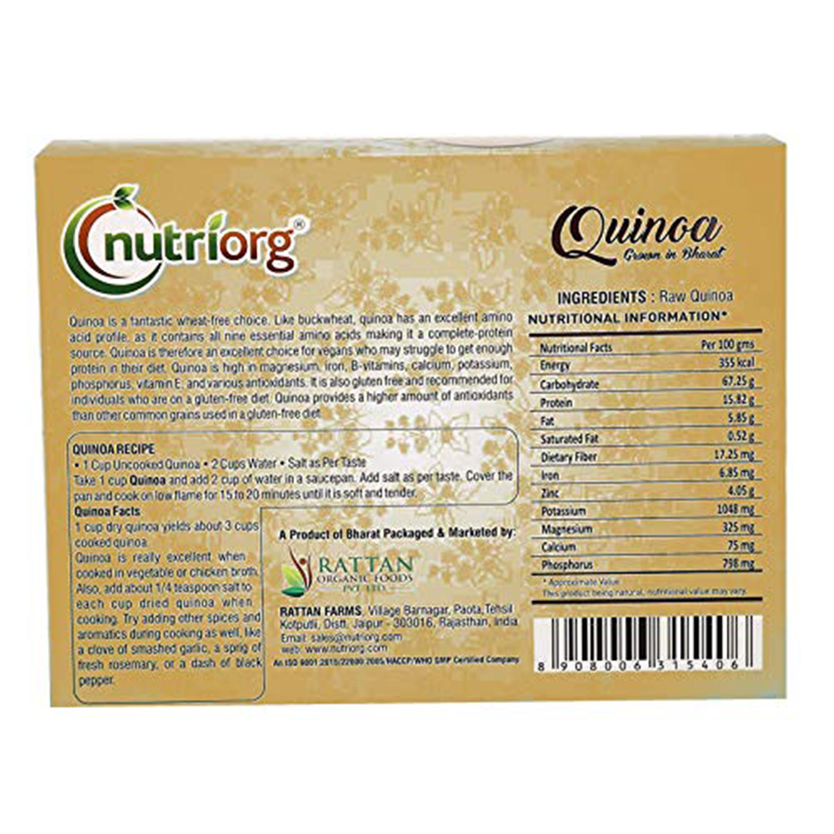 The Nutriorg Organic Quinoa is a fantastic Gluten-free food which has an excellent amino acid profile. It contains all nine essential amino acids making it a complete source of protein. Quinoa is therefore an excellent choice for vegans who struggle for enough protein in their diet. Since it is gluten free it can be used by individuals who suffer from gluten intolerance. Quinoa contains Iron which helps keep red blood cells healthy and is the basis of hemoglobin formation. It has lysine which is mainly essential for tissue growth and repair.
