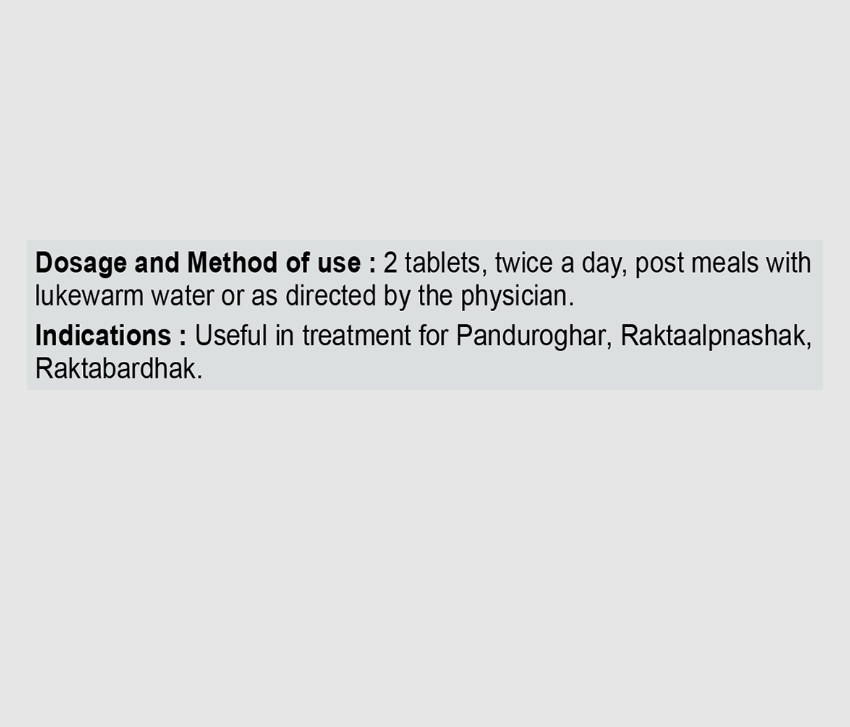 2 tablets, twice a day before meals with lukewarm water or as directed by the physician.