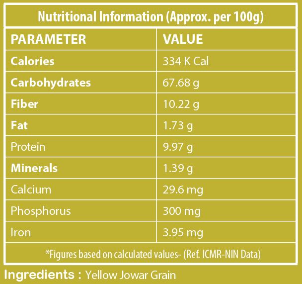 Yellow jowar has a glycemic index of 52.56,White jowar has a glycemic index of 49.85 both the types are packed with antioxidants and dietary fiber which is proven to significantly regulate blood sugar levels. The fiber content in Yellow Jowar could keep hunger strings under control. Searching for weight reduction? Yellow Jowar is your companion. Then Yellow Jowar directs the defections, helps digestion and turns away issues like bloating, swelling, and gas attributable to its rich fiber content. Yellow Jowar intensifies the resistance power of your body. It contains magnesium, calcium, and copper that is in charge of strong bones and tissues. The iron content in Yellow Jowar guarantees duplication of red blood cells. Consuming Jowar reduces the awful cholesterol successfully.