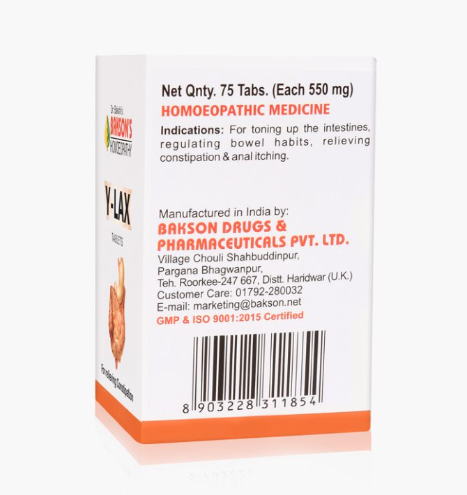 Bakson’s Y-lax tablets are an effective formulation with laxative action combining the valuable homoeopathic remedies and an additional constituent Phenolphthalein that tones up the intestines, regulates bowel habits, relieves constipation & anal itching. Y-lax tablets also relieve the associated complaints of bloated sensation, flatulence, abdominal pain & straining during defecation.