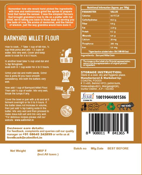 Barnyard millet flour is a type of flour made from barnyard millet, a small grain crop commonly grown in Asia.To make barnyard millet flour, the grains are harvested, dried, and then ground into a fine powder. The resulting flour has a light texture and a mild, slightly nutty flavor. It is gluten-free, making it a suitable option for individuals with gluten sensitivities or those following a gluten-free diet.