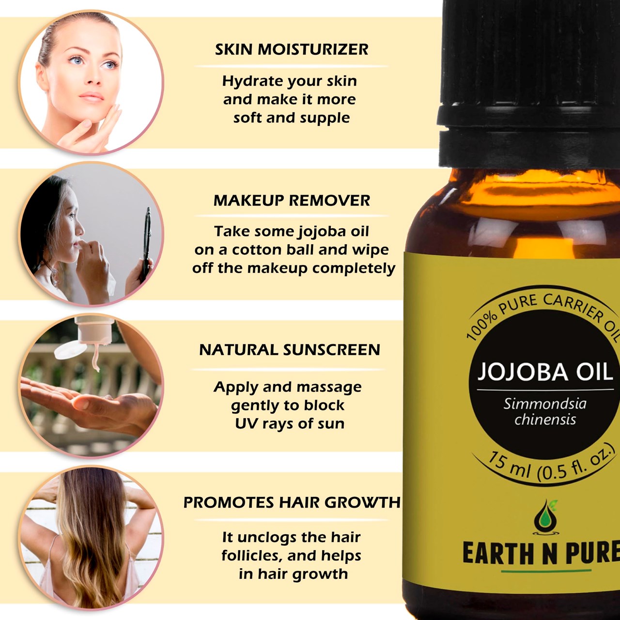 Earth N Pure’s Jojoba Oil is 100% pure carrier oil which has a very distinct herbal aroma and the color of this oil is generally gold yellow. Jojoba is an he...
