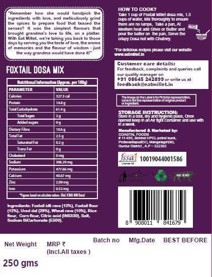 Eat millet foxtail dosa instant mix is a yummy breakfast, which allows you to enjoy a delicious dosa without any stress of all the preparation, and it is a perfect breakfast when you need a healthy bite.
