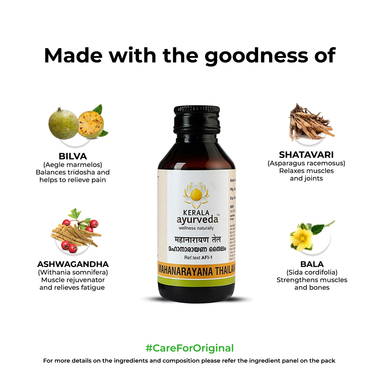 - Elevates your post-workout routine -Revitalize your body with Kerala Ayurveda's Mahanarayana Thailam. Its natural ingredients work to refresh and rejuvenate your body and mind, leaving you feeling recharged and revitalised.