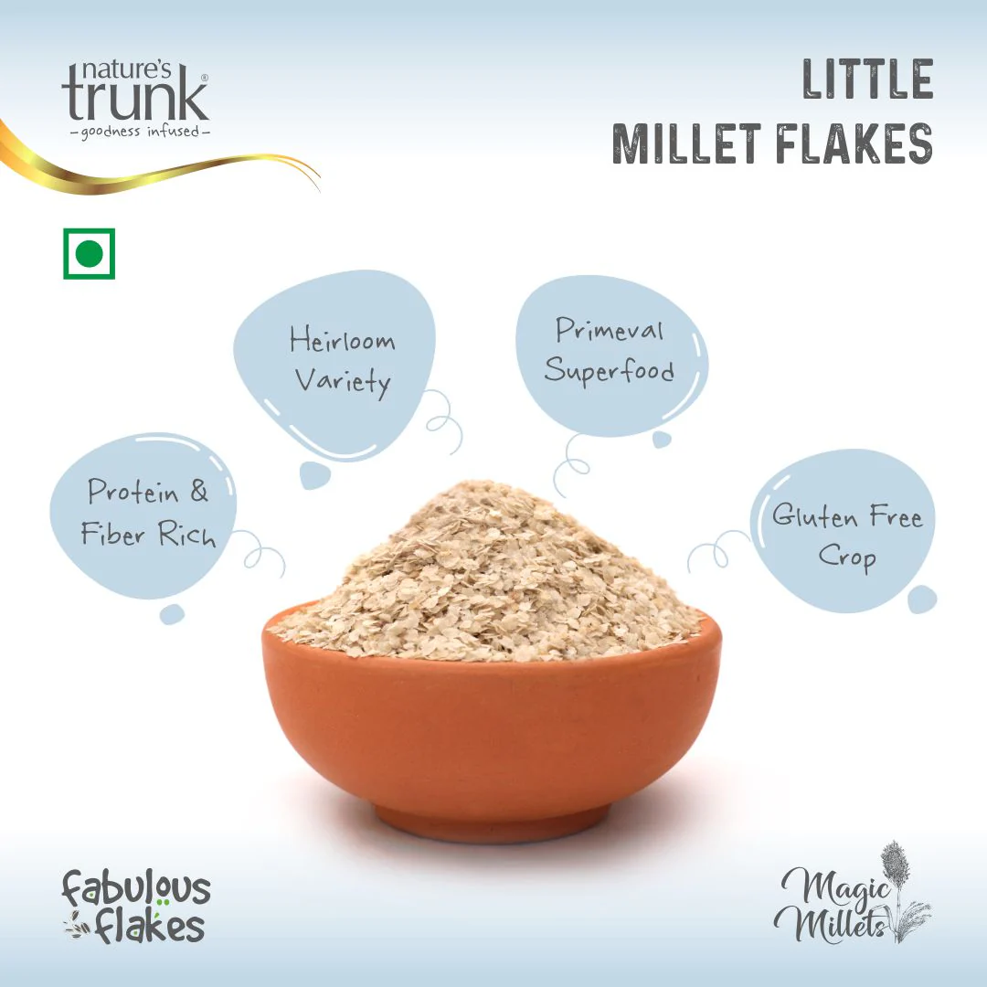 Little Millet Flakes (Kutki / Samalu) are gluten-free and low-fat grains packed with essential nutrients like fiber and protein. They support digestion, heart health, and blood sugar control. With their distinct flavour and numerous health benefits that can be incorporated into various recipes.