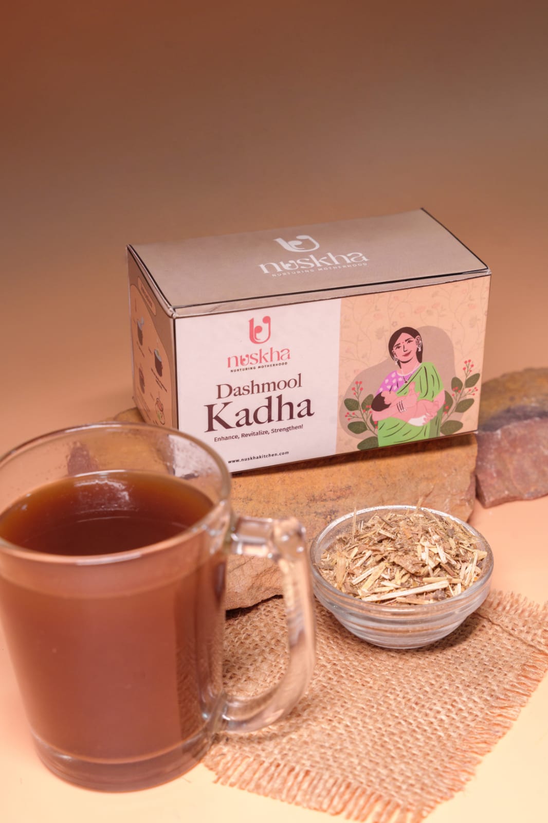 DashmoolKadha, a revered Ayurvedic herbal decoction, has been trusted for centuries to support new mothers during their postpartum journey. Crafted from a blend of ten potent roots and herbs, this traditional tonic is a natural addition to post pregnancy care and a nourishing lactation food for mothers after delivery.