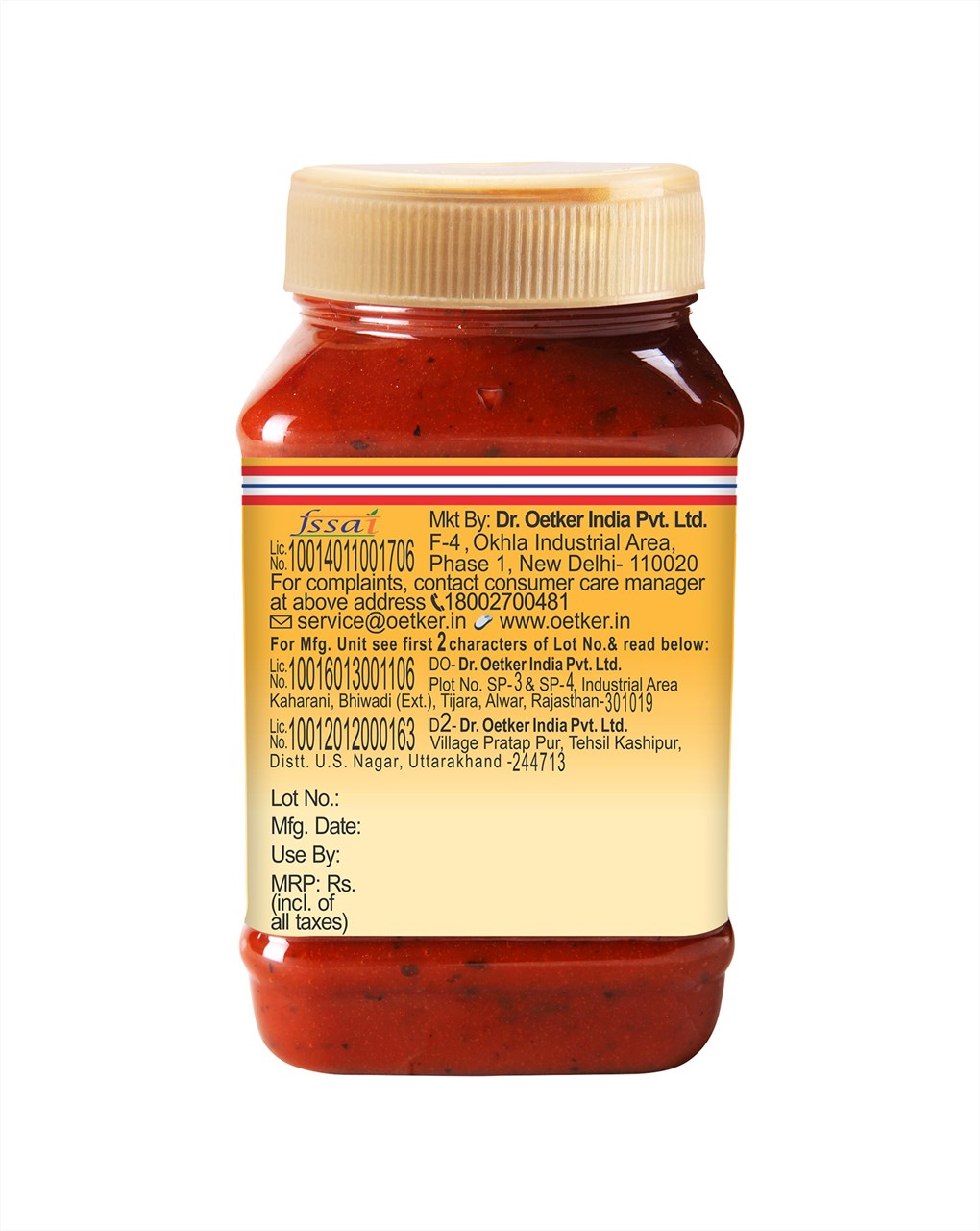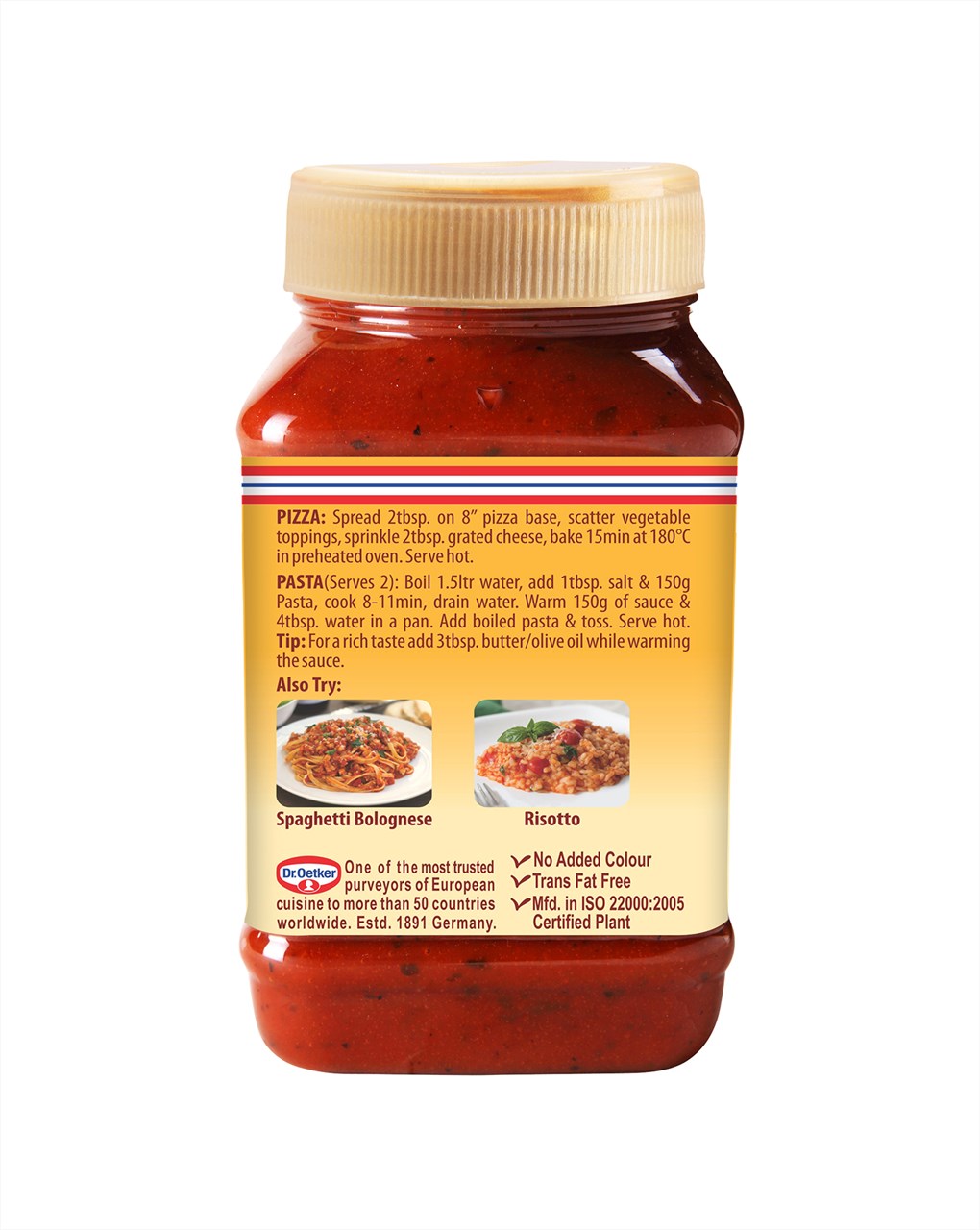Dr. Oetker FunFoods Pasta & Pizza No Onion No Garlic sauce is specially developed, keeping in mind the cultural preferences of certain communities. This sauce is free from onion and garlic but loaded with real tomatoes and special herbs to make delicious pasta and pizzas dishes.