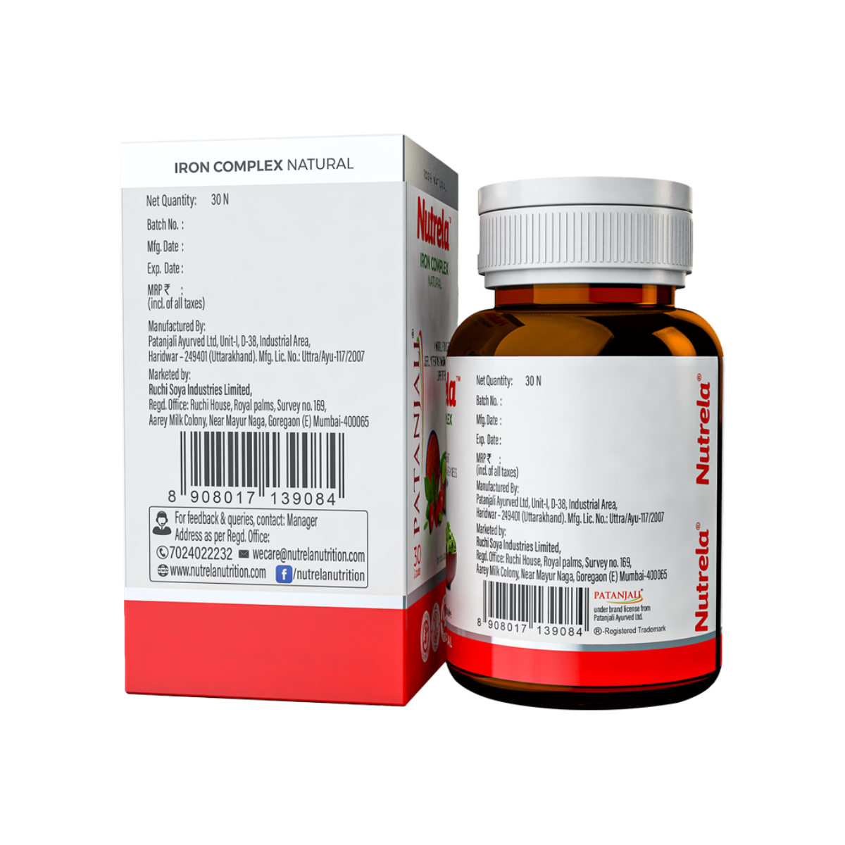 Nutrela Iron Complex Natural is 100% Vegan & Natural Iron supplement for Vegans and Non Vegans. It is Gluten Free, GMO Free with no added color and preservative free. Helps you to meet 100% RDA of Iron.