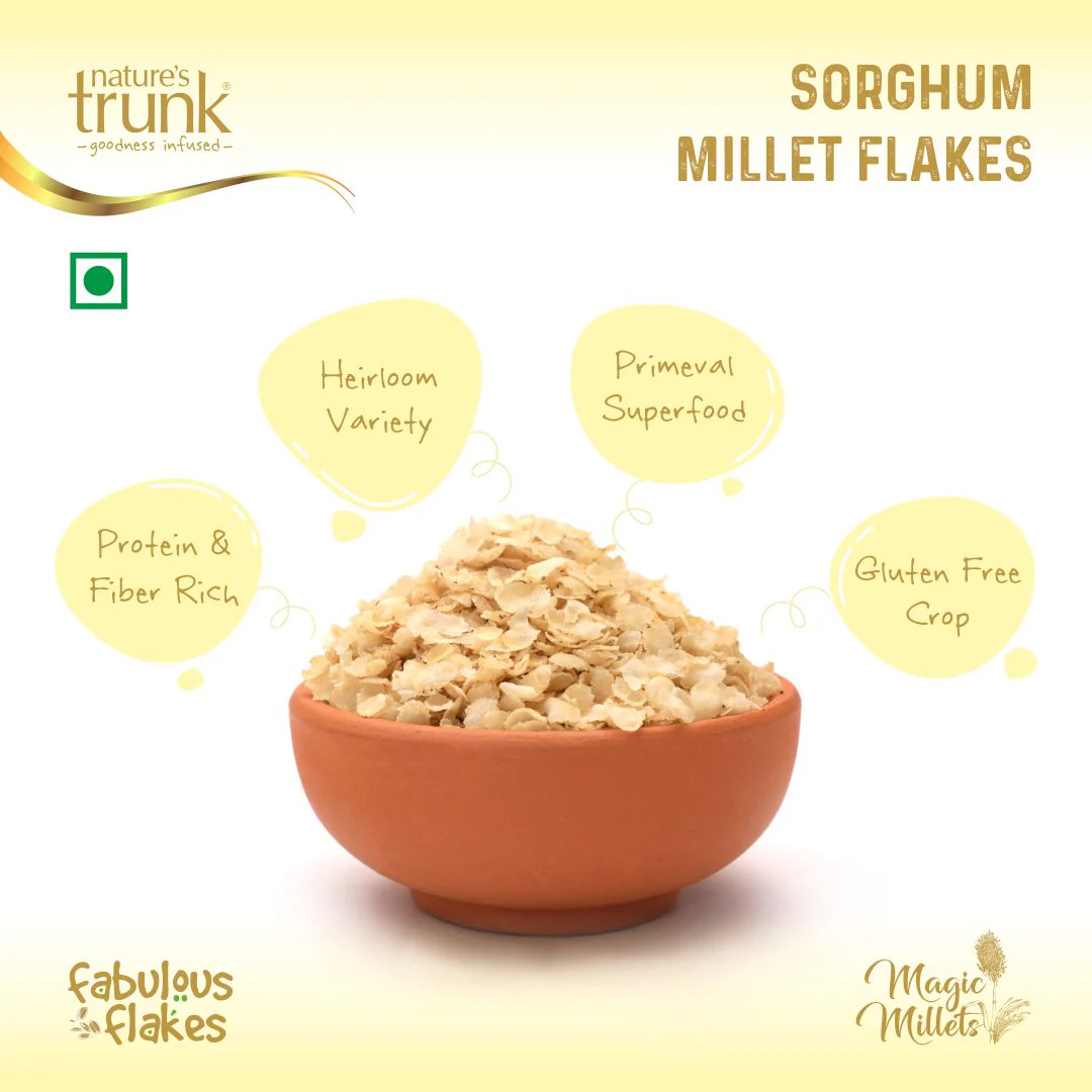 Sorghum Flakes or Jowar Flakes are made from high-quality Jowar and offer a nutritious and delicious breakfast option. Rich in essential nutrients and naturally free of gluten. Sorghum Flakes or Jowar Flakes provide a tasty and wholesome way to begin your day. Savour the delightful taste and texture of Sorghum while reaping its health benefits.