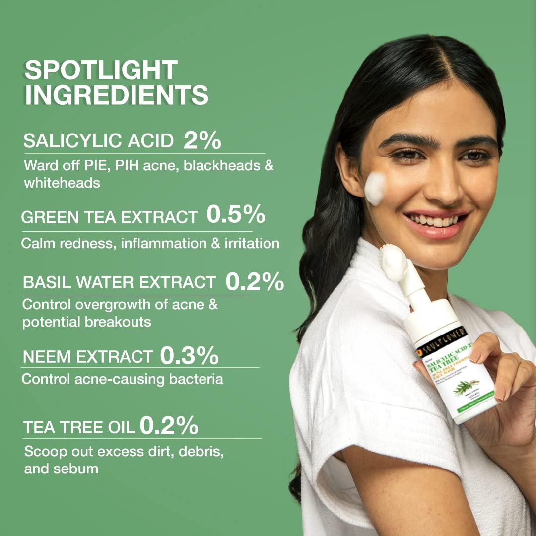 The Soulflower Salicylic Acid Face Wash is a gentle, yet effective cleanser that is formulated with 2% salicylic acid. This face wash is designed to unclog pores, exfoliate the skin, and reduce inflammation. It is suitable for all skin types but is particularly effective for those with oily or acne-prone skin.