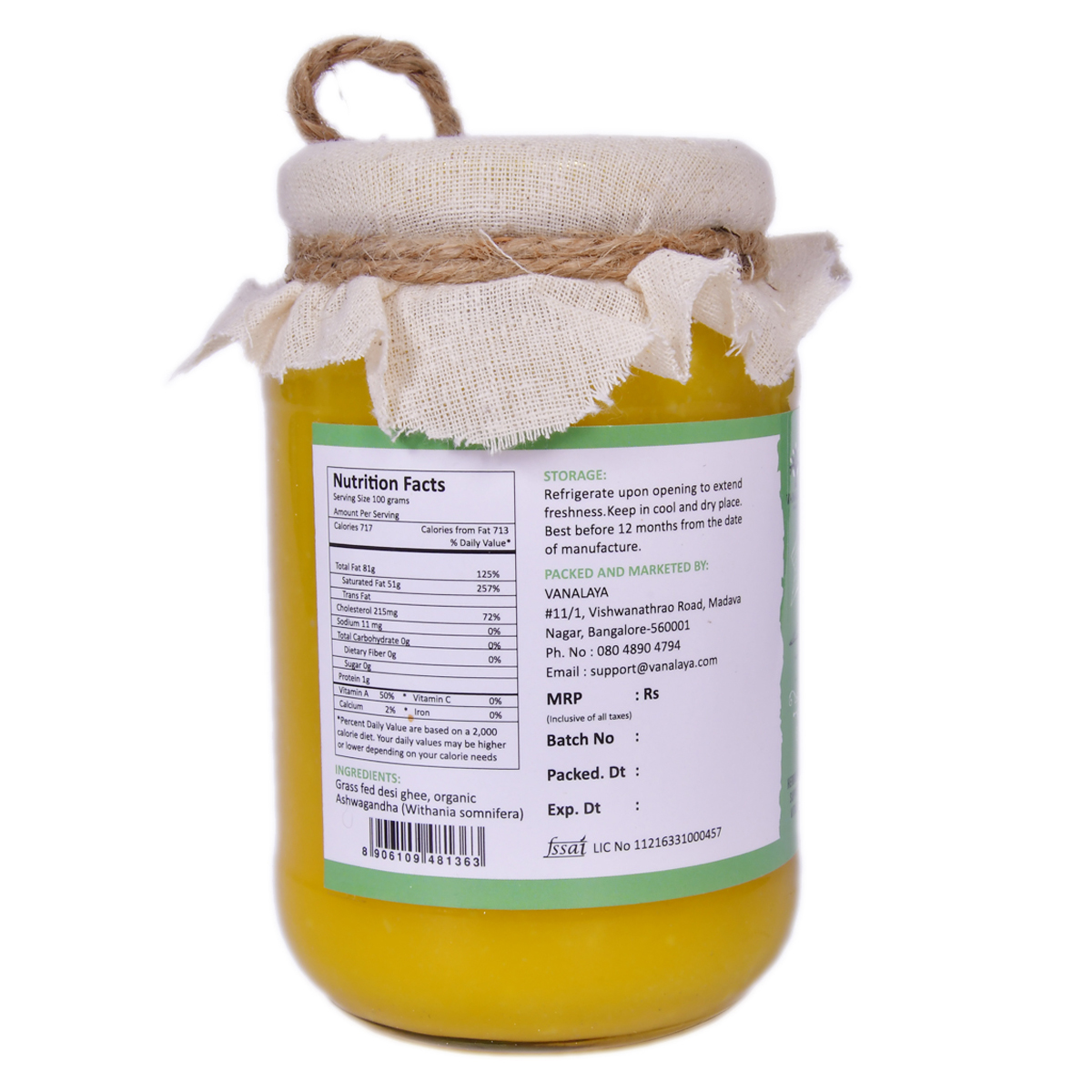 Our Grass-fed Organic Ashwagandha ghee is made from the milk of desi cows, fed on fresh green grass. The only ingredients are Grass-fed organic cultured ghee and organic Ashwagandha powder with absolutely nothing else added to it. Ashwagandha Ghee calms the nervous system and is believed to reduce anxiety or stress. Ashwagandha Ghee promotes the health of the adrenal system that manages the body’s response to environmental, physical and emotional stress. Ashwagandha has high levels of antioxidants which fight signs of aging such as wrinkles, dark spots, fine lines, and blemishes.