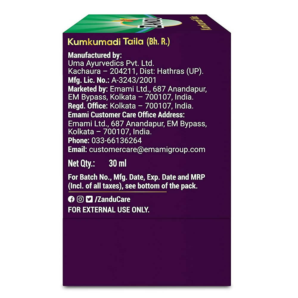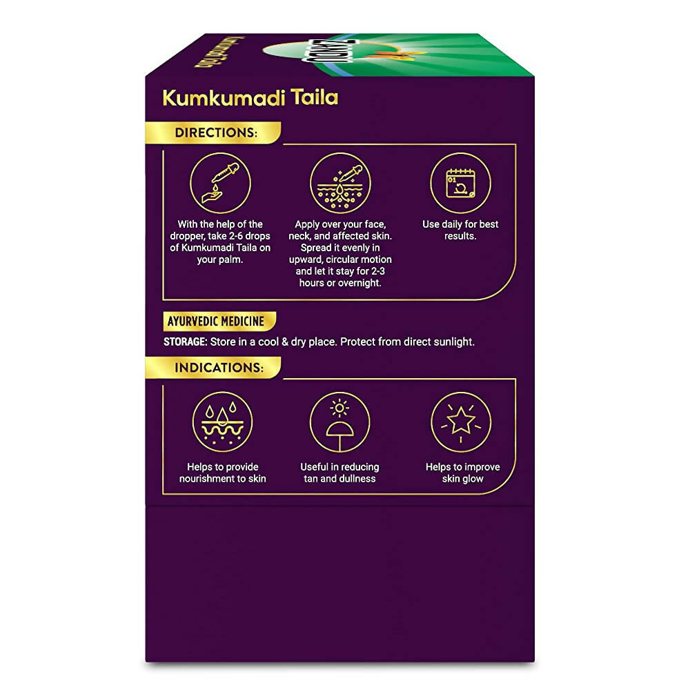 Improve your skin health and tone while reducing acne with our scientifically proven Kumkumadi Taila, an Ayurvedic skin elixir. This face oil enhances your skin tone and helps reduce issues like dark circles, pigmentation, acne, blemishes, and pimples. In today's busy world, many of us neglect proper facial care, making our skin an ideal target for issues as it collects pollution and germs throughout the day. Therefore, it is essential to include a face care product in your routine. Zandu Kumkumadi Oil is made from 100% natural oils and herbs such as Kumkum (saffron), Yastimadhu, Manjishtha, Shvetachandana, and Kamal. This face oil is designed to improve skin tone and reduce acne.
